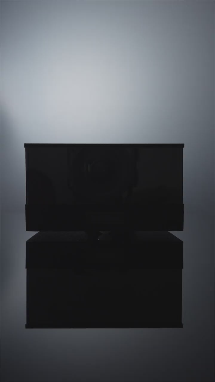 A motion-activated infinity display and key hanger, featuring true depth, USB-C rechargeable power, and proportions designed for 1:64 scale models.